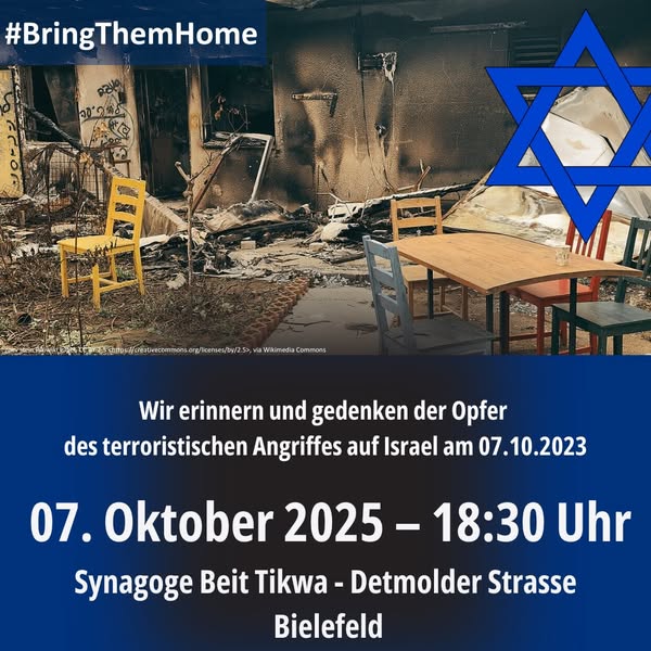 Mit regelmäßigen Mahnwachen vor der Bielefelder Synagoge Beit Tikwa stehen wir für Schutz und Solidarität für die jüdischen Menschen in Bielefeld ein. Wir gedenken wir der Opfer der Überfälle der Hamas am 7. Oktober 2023 und stellen uns gegen antisemitische Tendenzen hier in unserer Gesellschaft.