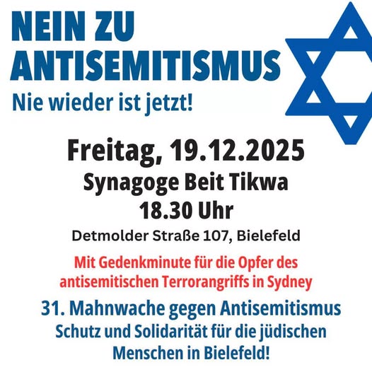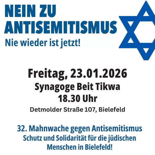 Die Mahnwachen finden jeweils unmittelbar vor den Gottesdiensten in der Synagoge statt, um den Gemeindemitgliedern die klare Botschaft zu vermitteln: „Ihr seid in Bielefeld gewollt und wir stehen an eurer Seite!“ Sie Mahnwachen werden oft begleitet von unterschiedlichen Redebeiträgen. #NieWiederIstJetzt